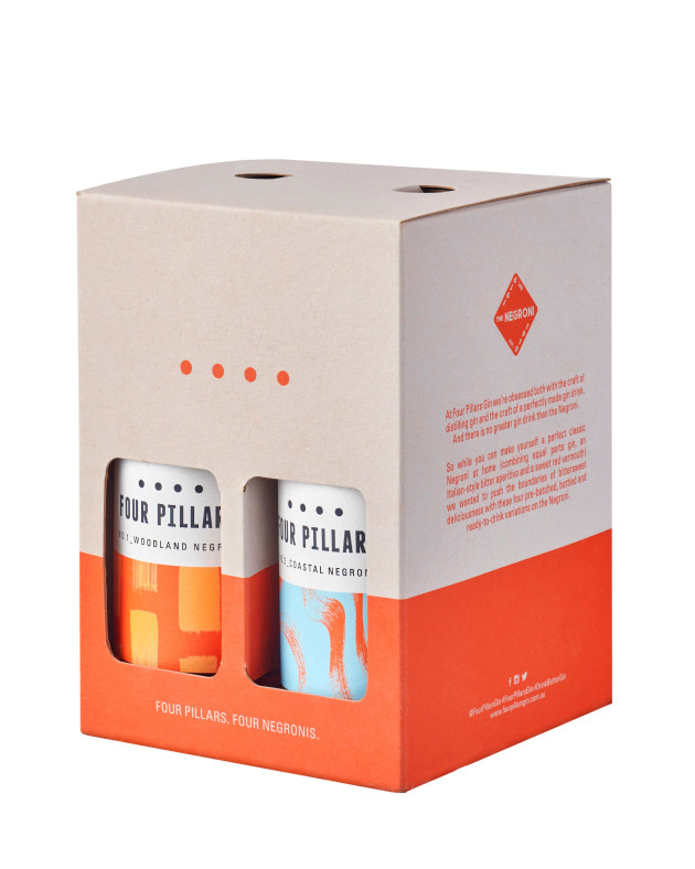 The Four Pillars single 200mL Negroni has an RRP $28.00 and the four-pack is avaialble for RRP $100.00.