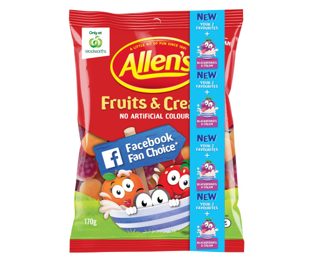 Blackberry & Cream will join fellow favourites Strawberries & Cream and Peaches & Cream in a new Allen’s Fruits & Cream Mix that will launch at Woolworths in mid-February at RRP $2.95.