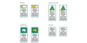 The concepts laid out by the government include a bar, pie chart or a map of Australia coloured to identify the proportion of ingredients that are Australian, as well as text indicating both whether the product was ‘Made in’ Australia and whether the ingredients are ‘more than’ or ‘less than 50 per cent local ingredients’ (see below).