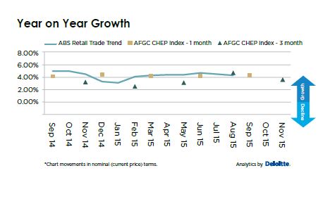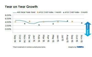 The AFGC CHEP Retail Index has revealed year-on-year retail growth is expected to soften to 3.6 per cent in the December quarter, from 4.2 per cent in the September quarter.