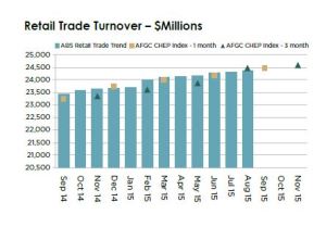 On a monthly basis, the index was 4.4 per cent higher in September 2015 compared with September 2014, with retail trade turnover of $24.5 billion.